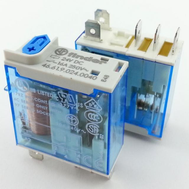 رله صنعتی تک کنتاکنت 5 پین 16 آمپر تولید فیندر (Finder) ایتالیا به همراه LED (چراغ) داخلی و دکمه تست مدل 4661 با کد سفارش 46.61.9.024.0074 با بوبین 24 ولت دی سی : جزو کالاهای تحریمی اتحادیه اروپا میباشد .