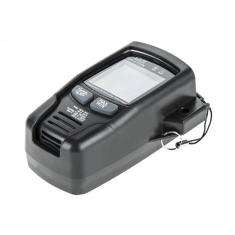 دیتالاگر دیجیتال دما و رطوبت مدل CEM DT-172TK دستگاهی به منظور اندازه گیری و ثبت مقادیر حاصل از اندازه گیری بر روی حافظه لاگر دستگاه می باشد . محدوده اندازه گیری دما در بازه -۴۰ تا ۷۰ درجه سانتی گراد و محدوده اندازه گیری رطوبت نیز در محدوده ۰ تا ۱۰۰% RH می باشد. حافظه لاگر این مدل دارای ظرفیت ۳۲۰۰۰ مقدار برای ذخیره اطلاعات می باشد که بدین ترتیب می توان اطلاعات را تا دراز مدت در اختیار داشت و به منظور کاوش و بررسی به رایانه منتقل کرد. علاوه بر این با استفاده از این دیتالاگر دما و رطوبت می توان دما را به صورت تماسی با استفاده از ترموکوپل نوع K نیز در محدوده -۲۰۰ تا ۱۳۷۰ درجه سانتی گراد اندازه گیری کرد. امکان تعیین زمان نمونه برداری از ۱ ثانیه تا ۲۴ ساعت و صفحه نمایش LCDبزرگ با قابلیت نمایش جزئیات دقیق زمانی از ویژگی های دیتالاگر دیجیتال دما و رطوبت سم مدل CEM DT-172 می باشد.