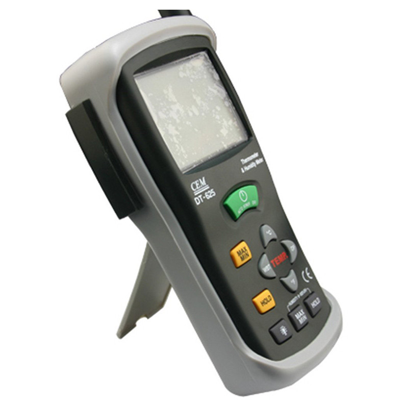 رطوبت سنج و ترمومتر سم CEM DT-625 یک دستگاه مناسب برای اندازه گیری دما و رطوبت است که قادر به اندازه گیری دمای نقطه شبنم و دمای مرطوب می باشد. این محصول می تواند اندازه گیری دما را در محدوده -۳۰ تا ۱۰۰ درجه سانتی گراد و رطوبت نسبی را در محدوده ۰ تا ۱۰۰% RH با دقت بالا انجام دهد. همچنین محدوده اندازه گیری دمای نقطه شبنم در بازه -۳۰ تا ۱۰۰ درجه سانتی گراد و دمای مرطوب نیز در بازه ۰ تا ۸۰ درجه سانتی گراد می باشد. قابلیت پاسخ گویی در کوتاه ترین زمان، نمایش دوگانه مقادیر بر روی صفحه نمایش بزرگ LCD با نور پس زمینه و کاربری بسیار ساده دستگاه از دلایلی است که سبب می شود از این رطوبت سنج و ترمومتر سم DT-625 در آزمایشگاه ها، مصارف صنعتی و مهندسی استفاده های فراوانی شود. رطوبت سنج و دماسنج محیطی قابل حمل سی ای ام مدل CEM DT-625 رطوبت سنج و دماسنج محیطی ارزان قیمت مدل CEM DT-625 دستگاهی جهت اندازه گیری رطوبت نسبی محیط تا 100% RH و اندازه گیری دمای محیطی تا 100 درجه سانتیگراد می باشد .