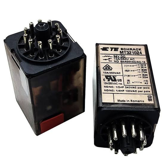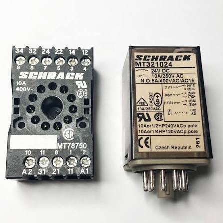 رله شیشه ای 3 کنتاکت پایه گرد شراک DC 24 ولت 10 آمپر 11 پایه SCHRACK MT321024